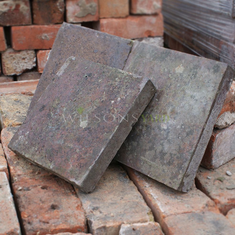 Reclaimed 9 inch x 9 inch dark quarry tiles