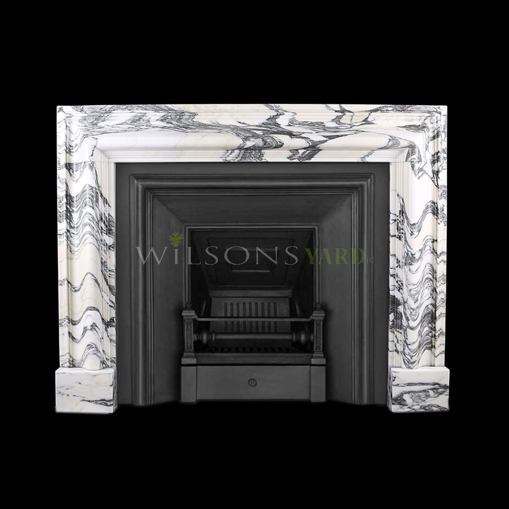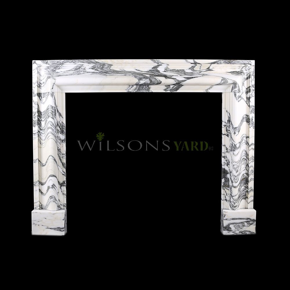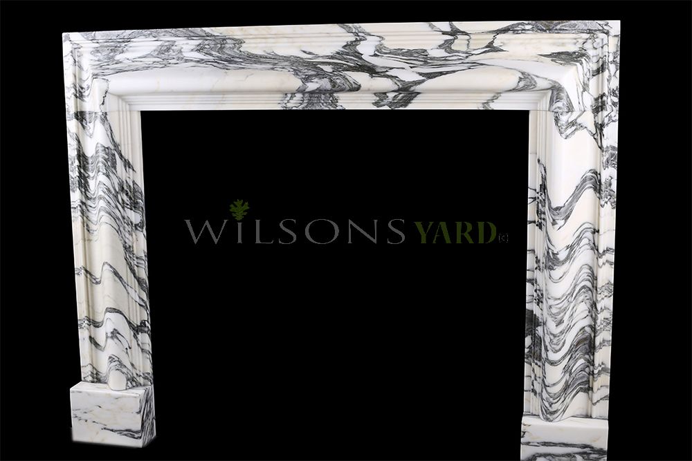 A beautiful Baroque bolection fireplace surround in the finest Arabescato Italian marble