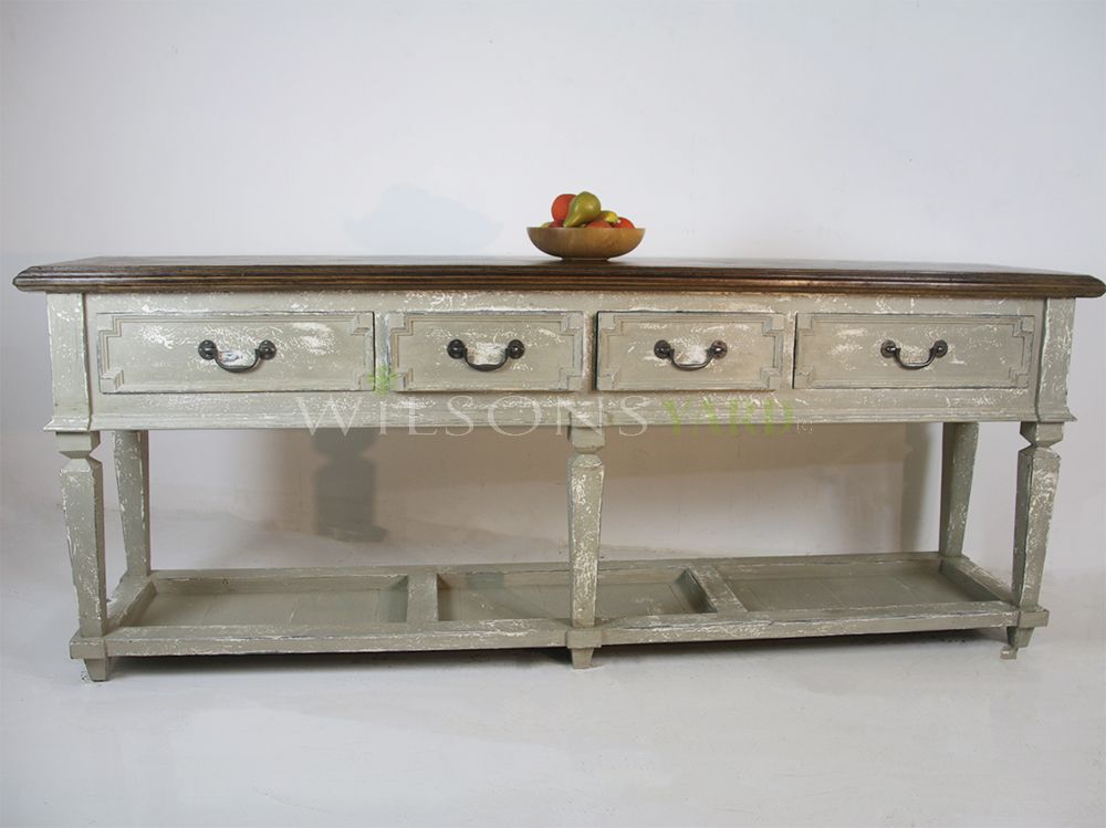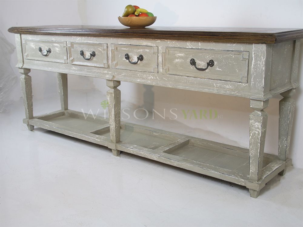 Large Bohemian Style Side Server / Pot Board / Sideboard With Reclaimed Parquet Top