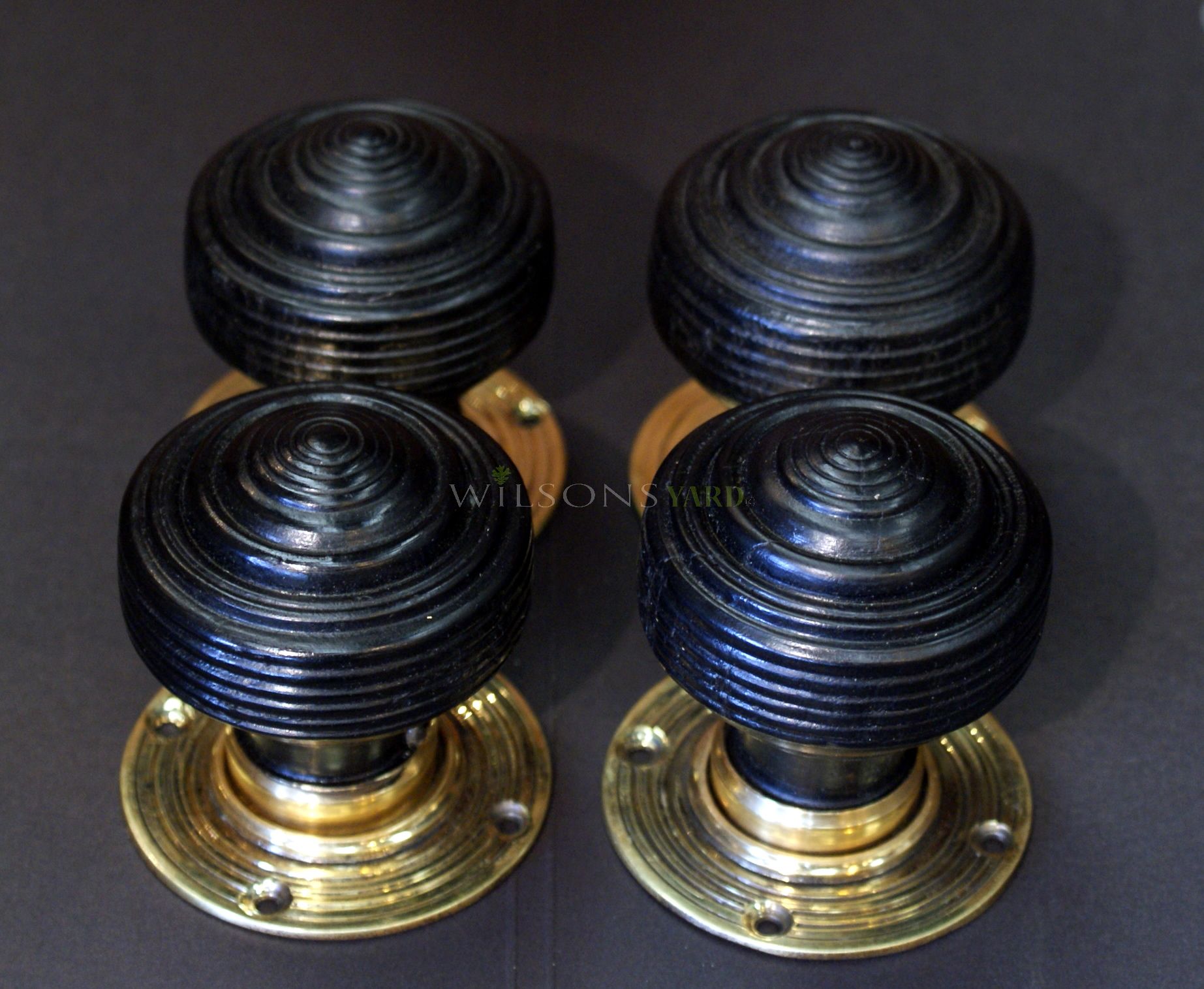 - Ebonized Wooden Georgian Door Handle / Door Knob with Brass Back Plate