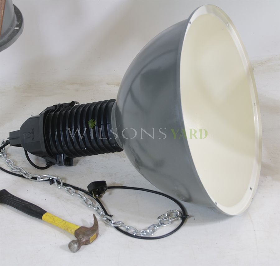 Restored vintage Philips industrial lights, salvaged from an old mill in Derry / Londonderry