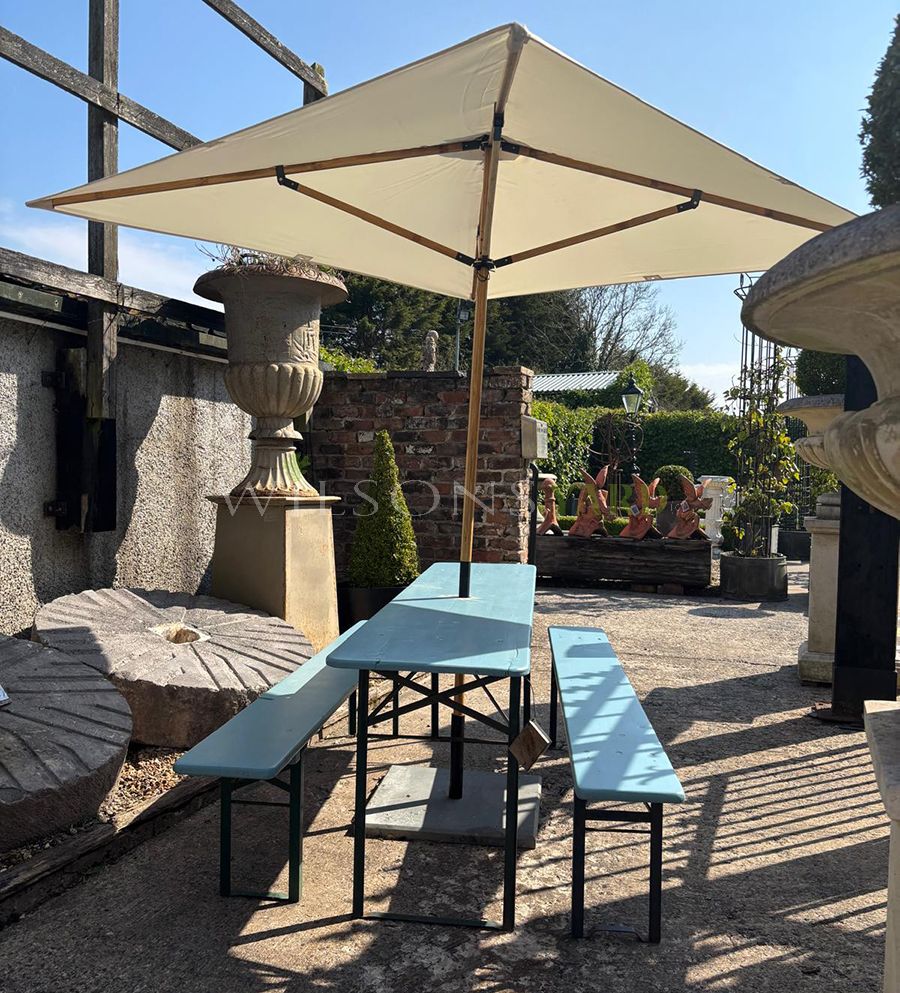 Fantastic German beer Keller table with two benches, ideal for turning your garden into a beer festival experience. Folding away within two minutes into three planks, these retro tables and benches are ideal for storage.