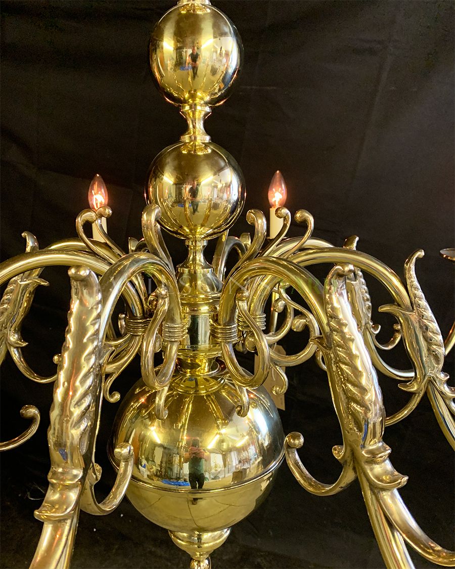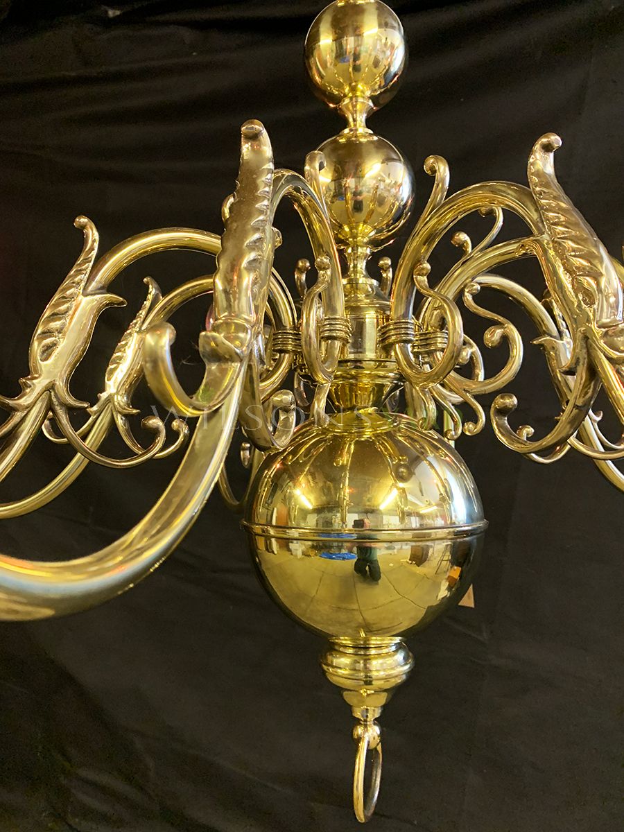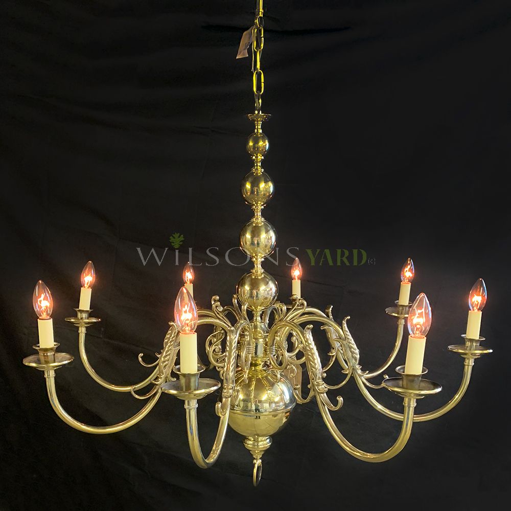 Impressive large Georgian style brass chandelier, supporting 8 no candles. Restored & tested