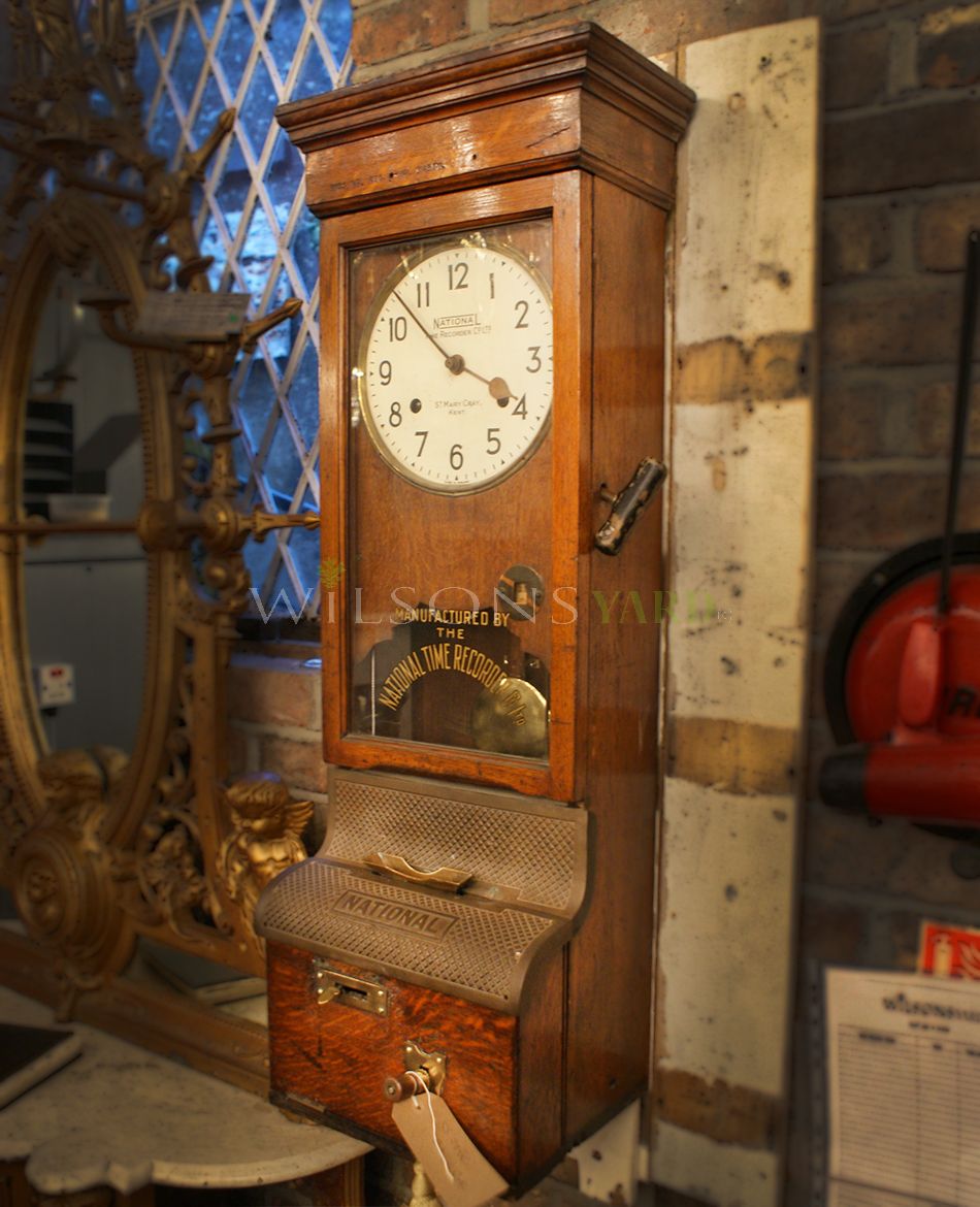Industrial clocking in clock in Oak. Manufactured by the National time recorder Co Ltd.