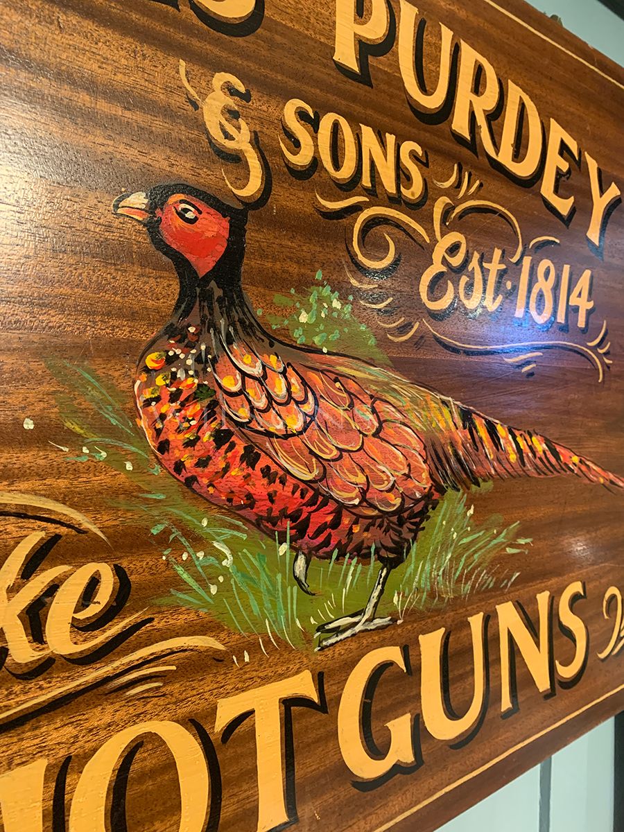Vintage wooden painted sign James Purdy & Sons Shotguns