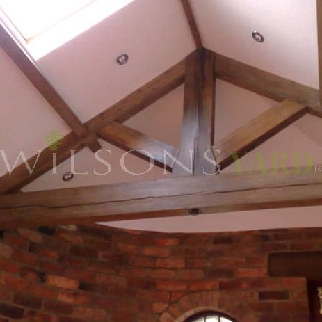 Splendid king post truss in reclaimed pine finished with a beautiful hand sanded and wax to reveal the grain and colour of the wood.