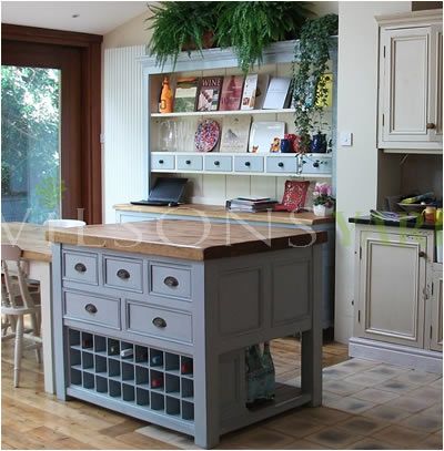 Mini Island with chunky work surface in reclaimed pine. Designed to your specific specification and needs.
