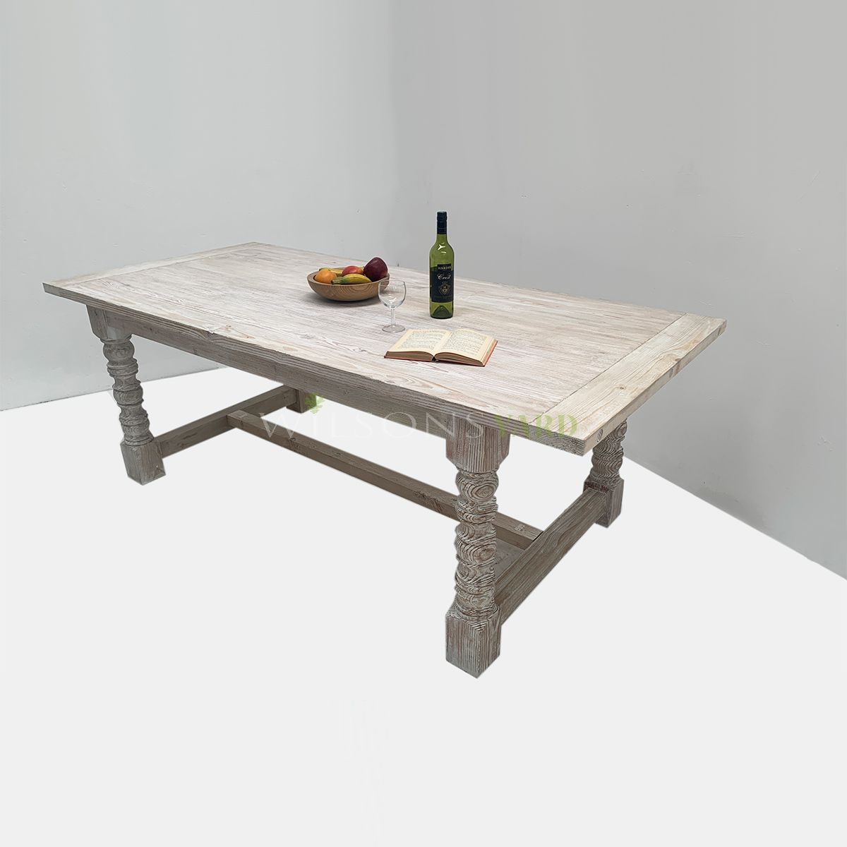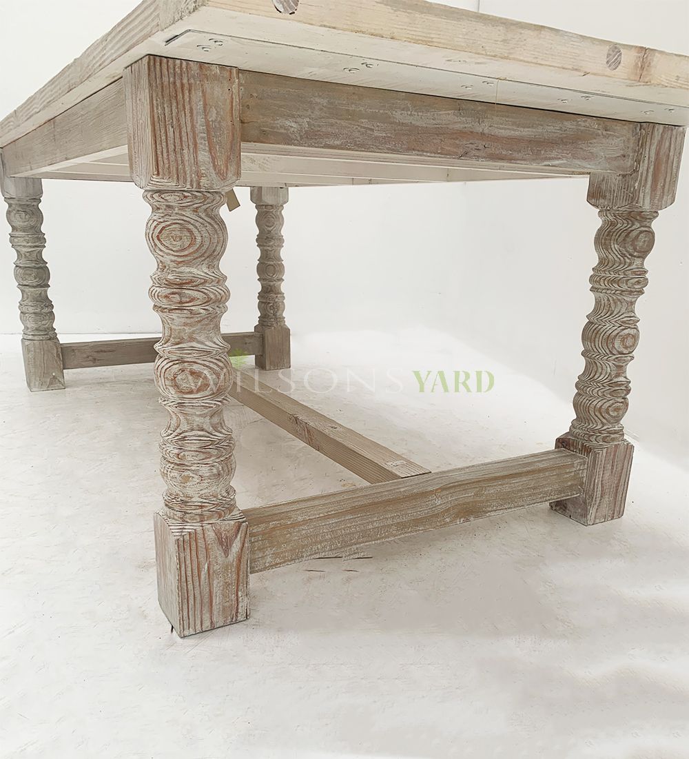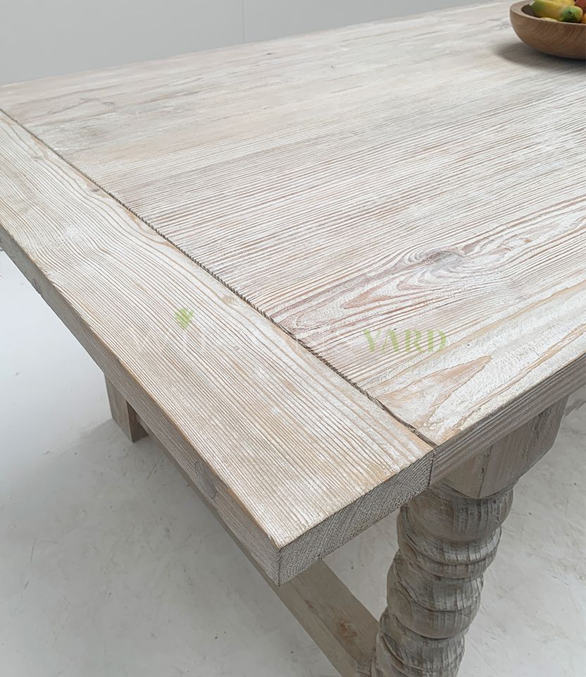 This table is made from reclaimed, weathered pine. Each piece will differ slightly and have natural imperfections.
