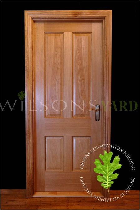 4 panel engineered Oak door with traditional deep center rail & bottom rail.