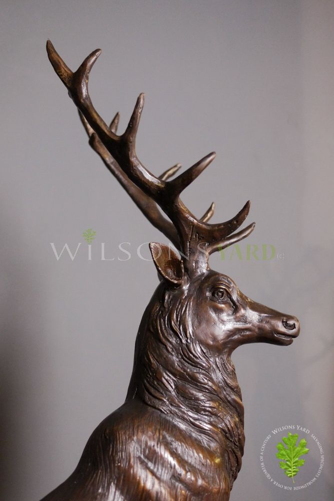 - Pair of Bronze Reposing Stags on Marble Plinths