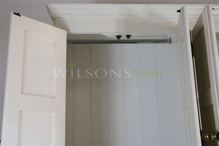Pantry unit / larder storage unit with 2 over 2 cupboards with plenty of shelves and cupboards. Complete with hanging rail and finished with cornicing and brass embellishments.