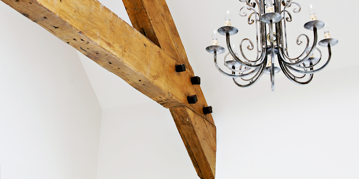 Pre finishing of roof trusses and beams is done by a range of beautiful eco oils and waxes that bring out the grain in these wonderful old timbers.