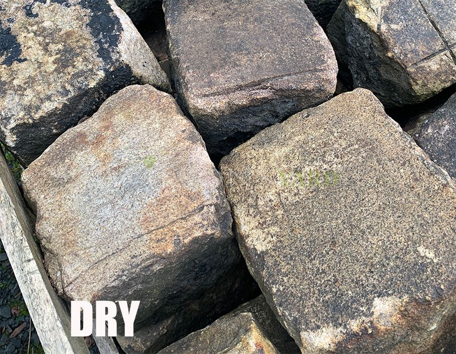 Random Yorkstone cobbles are sold by the tonne, there is approx 2 sq meters per tonne or approx 17 linear meters per tonne