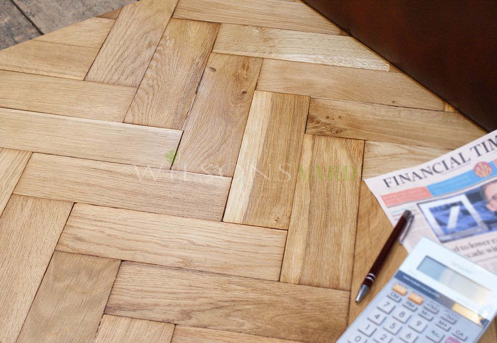 Salvaged Oak parquet flooring, reclaimed from offices in London