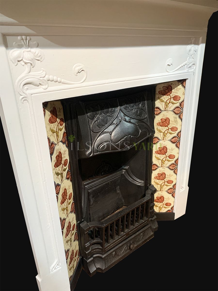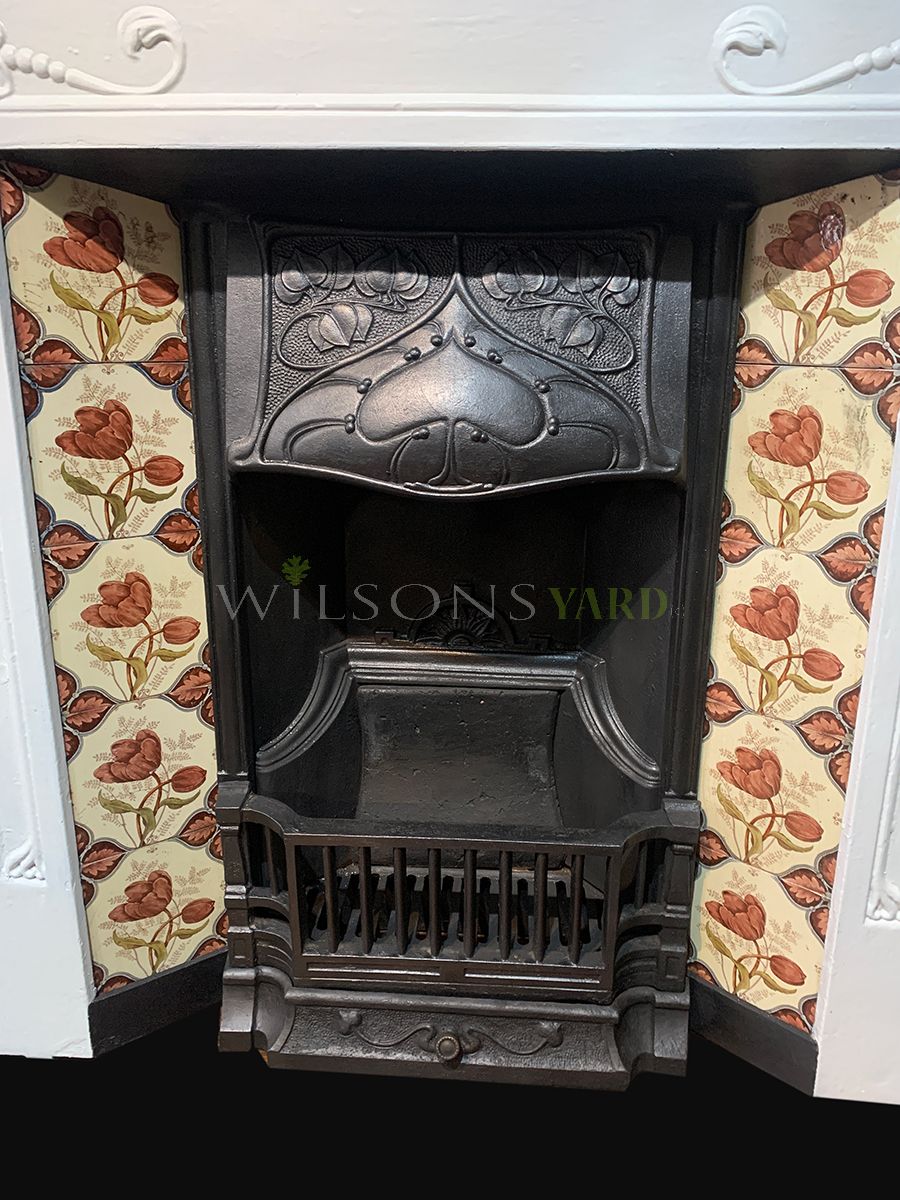 Beautifully restored Edwardian cast iron fireplace with original tiles (tiles 1900)