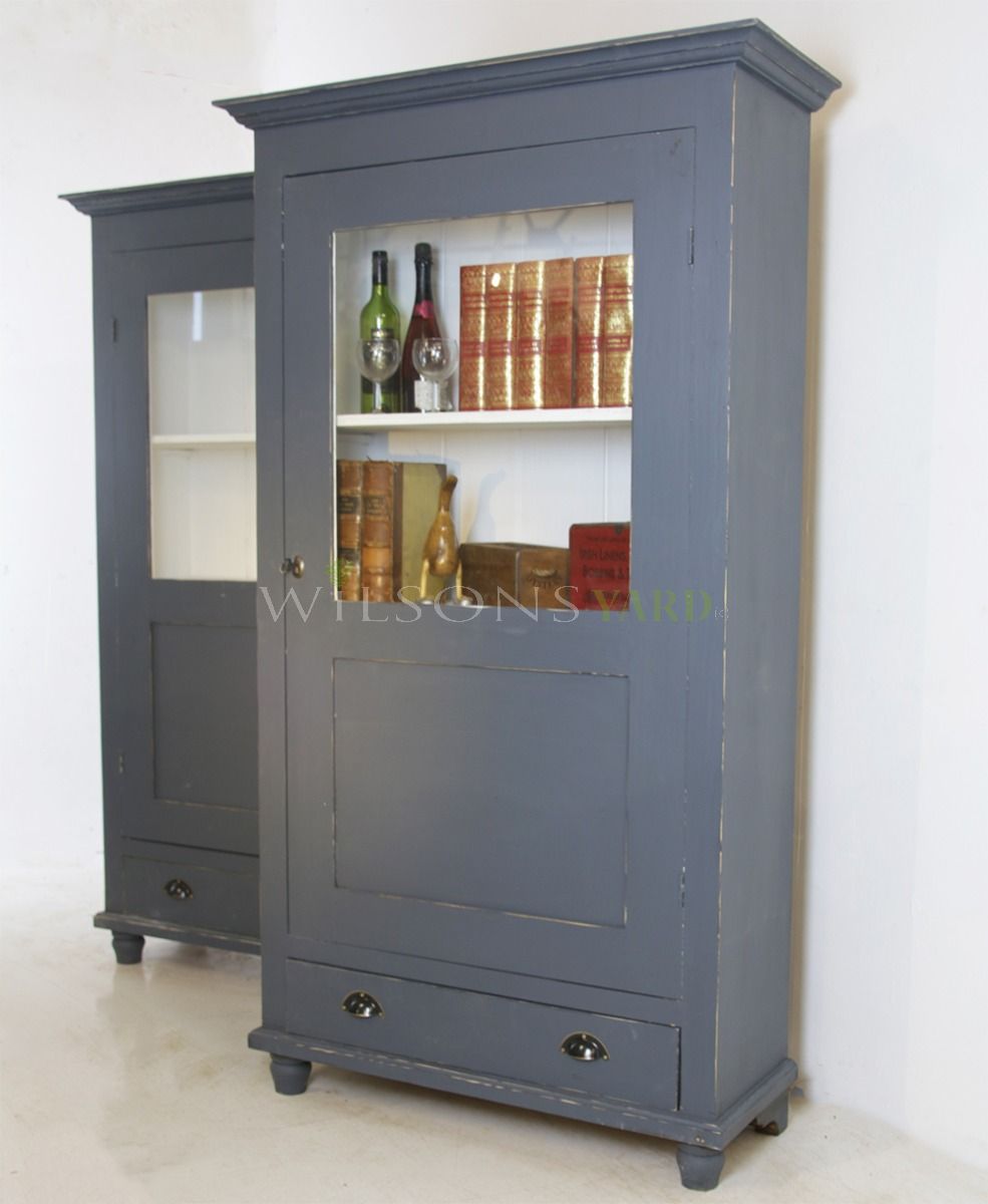 Restored vintage Swedish larder / bookcase with large semi glazed door and single drawer below.