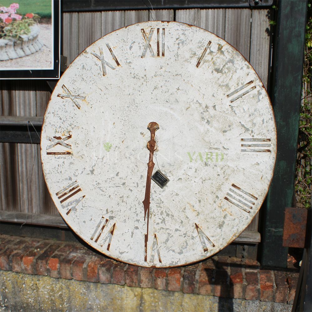 - Round painted metal clock face