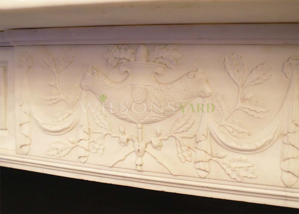 Doric Columns With Incised Corner Blocking, Reeded And Moulded Frieze With An Exceptional Carved Plaque Featuring Mythical Beasts, Oak Leaf Foliage