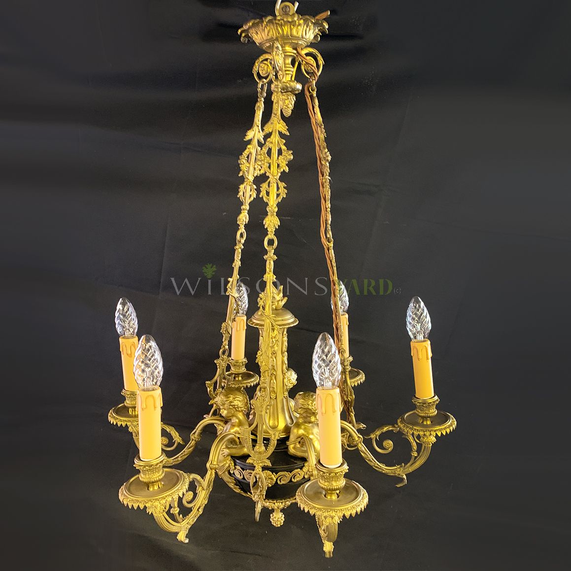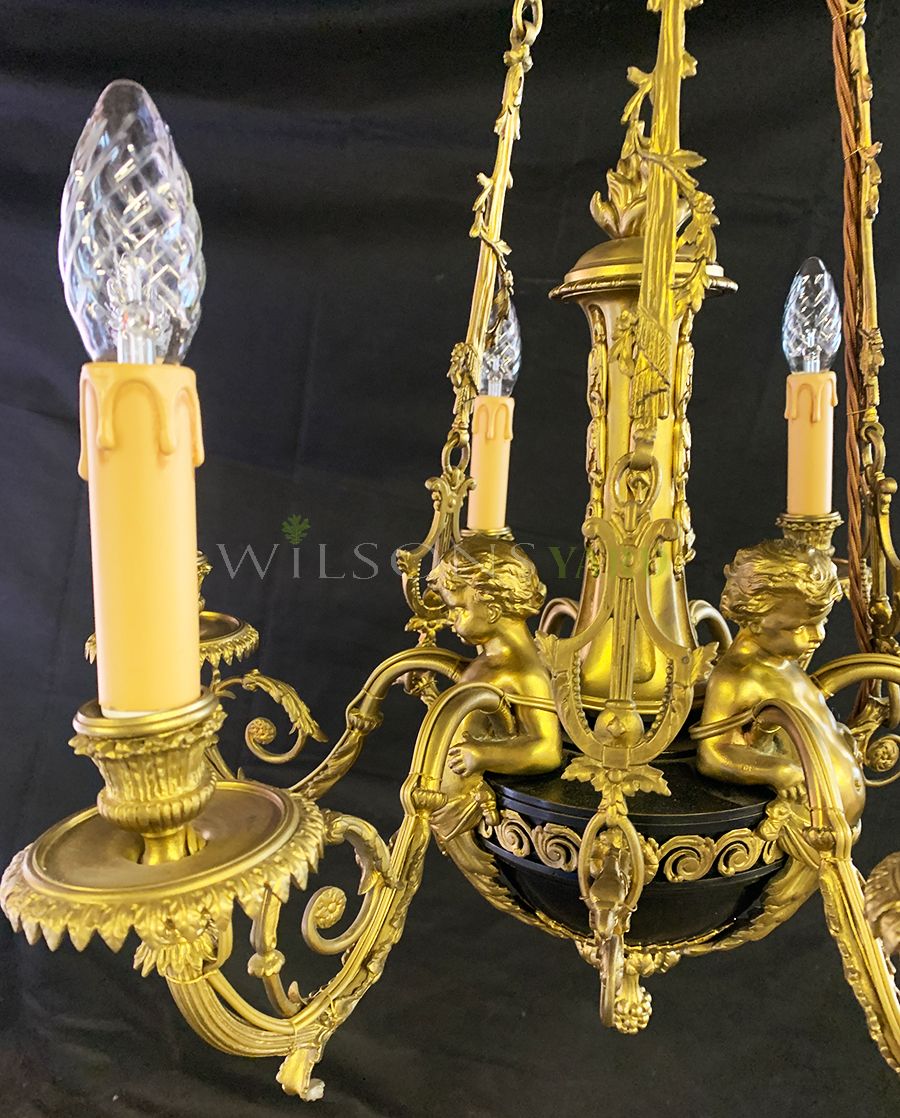 - Stylish French gilded brass chandelier, supporting cherubs and 6 candles