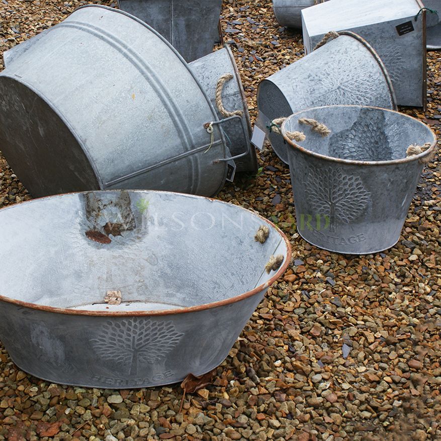 Various metal garden buckets & tub planters. Would make great feature pieces in any garden design.