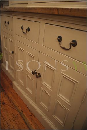 A Beautiful Victorian Style Kitchen Larder Distressed By Hand Complete With Side Lights.