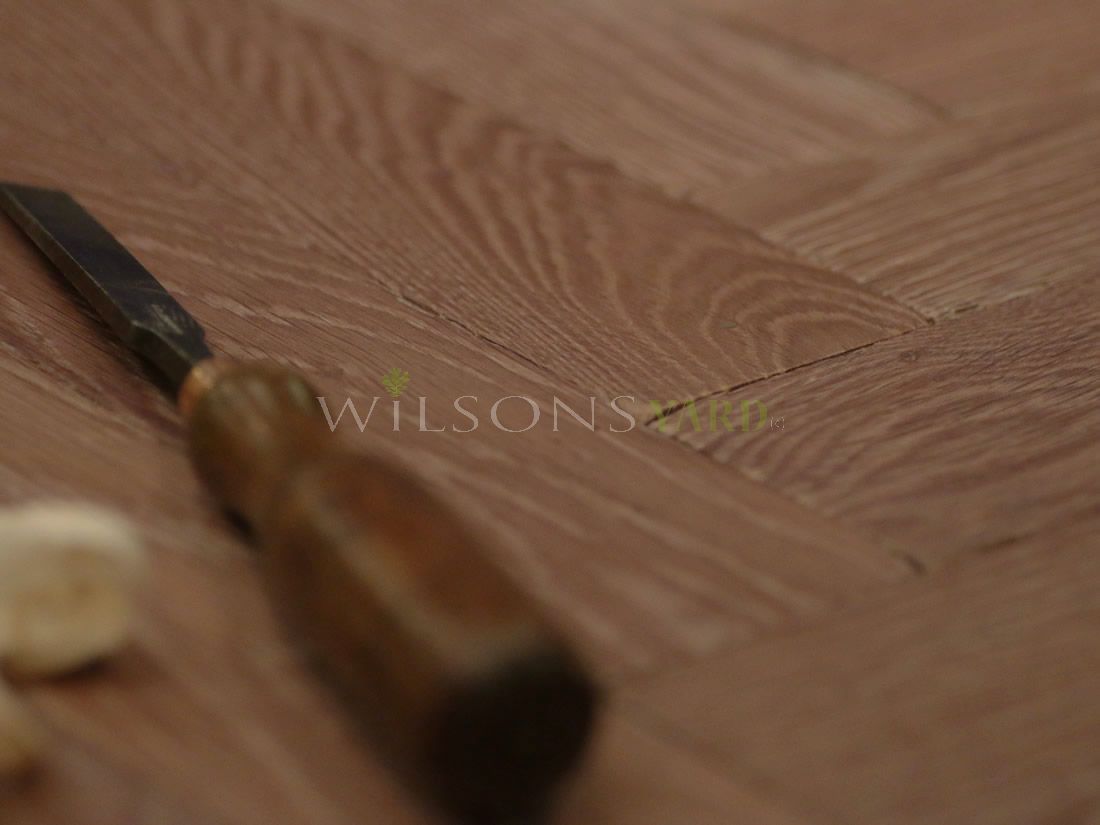 A. With reclaimed boards, Wilsons will clean the board and remove any nails or pins leaving it suitable for reuse. With parquet/woodblock flooring we will remove a sufficient amount of the original glue/tar from the bottom and edge of each block leaving it suitable for reuse.