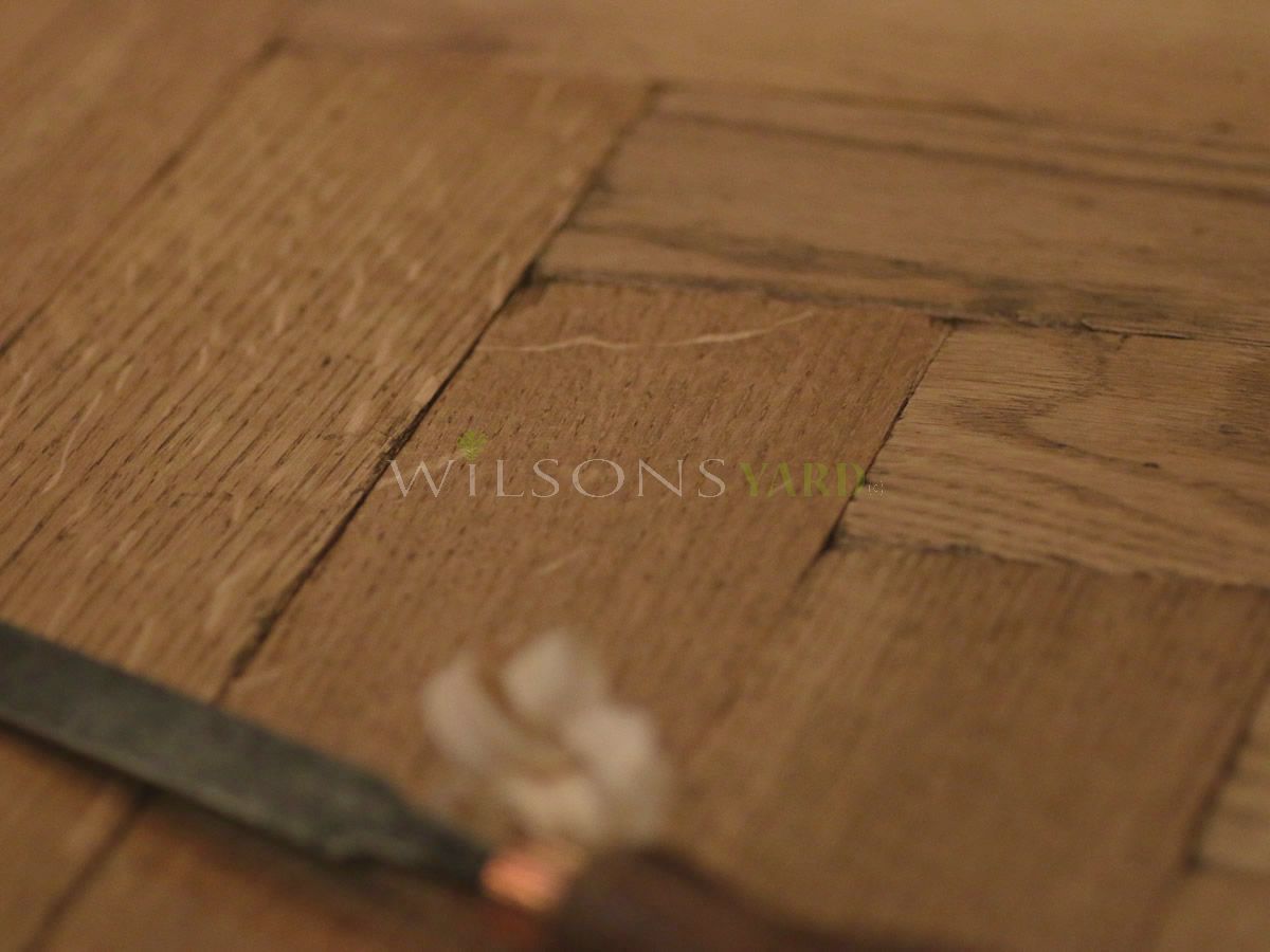 A. With reclaimed boards, Wilsons will clean the board and remove any nails or pins leaving it suitable for reuse. With parquet/woodblock flooring we will remove a sufficient amount of the original glue/tar from the bottom and edge of each block leaving it suitable for reuse.