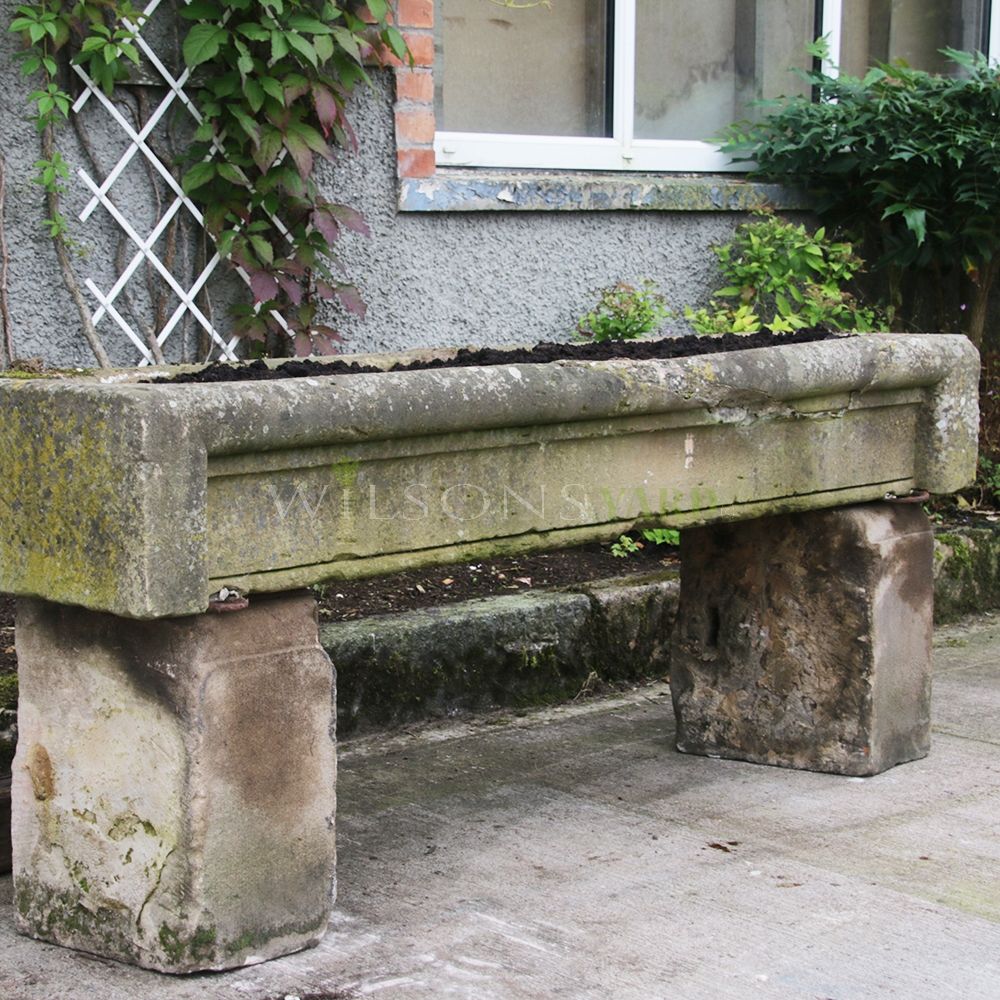 Wonderful original 19th century country house Horse trough with original iron work ( horse ties) standing on replacement plinths. Historic damage to front edge